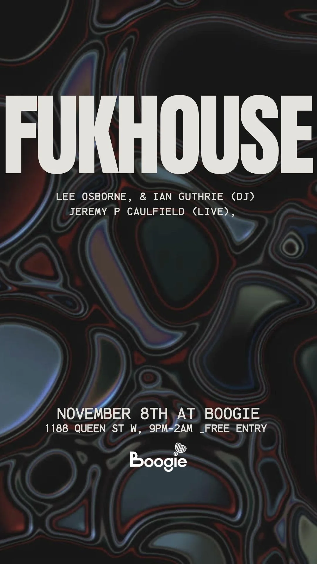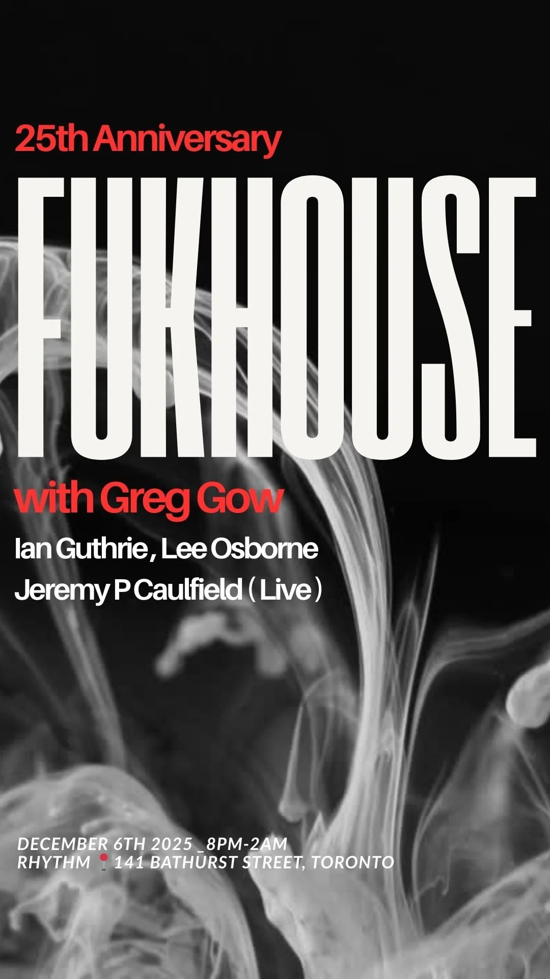 Fukhouse is a legendary Toronto underground techno collective that ran parties through the late 90s and early 2000s. Spearheaded by Ian & Paul Guthrie with Jeremy P Caulfield , Lee Osborne and Eric Downer as residents, it became a central hub for the city’s electronic music scene. Known for raw energy, uncompromising bookings, and an intimate community vibe, Fukhouse introduced Toronto crowds to cutting-edge minimal and techno before it hit the mainstream.
