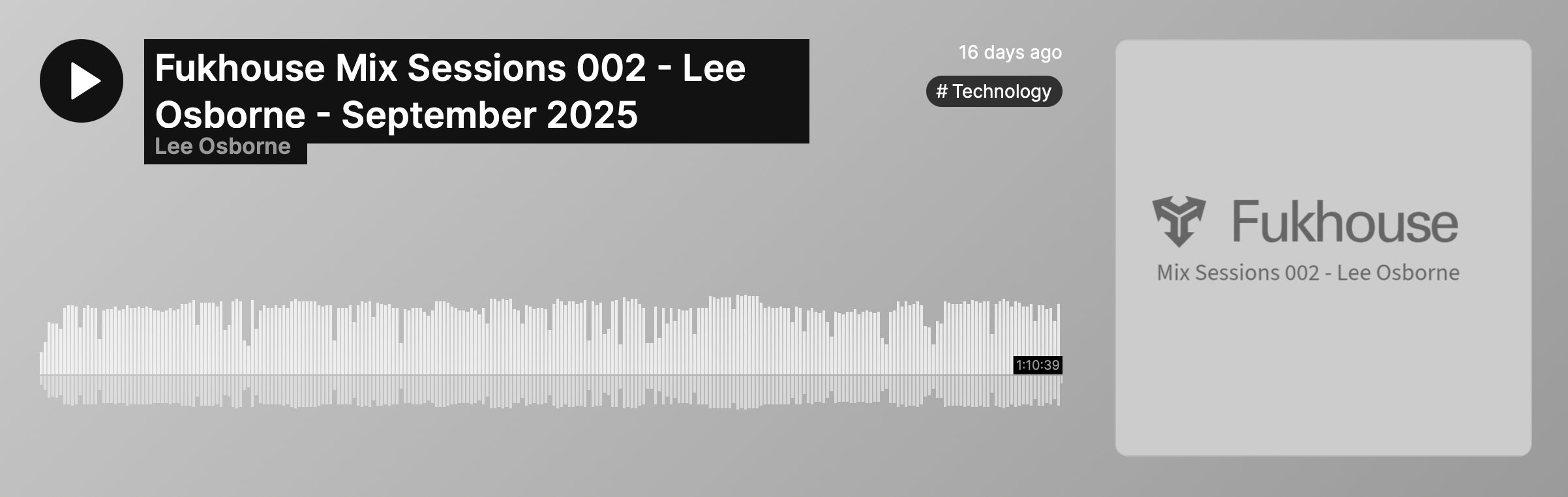 With roots anchored in the formative rave days and decades of contribution to Toronto’s electronic community, Lee Osborne continues to embody the spirit of a true Fukhouse resident — committed, underground, and uncompromising.